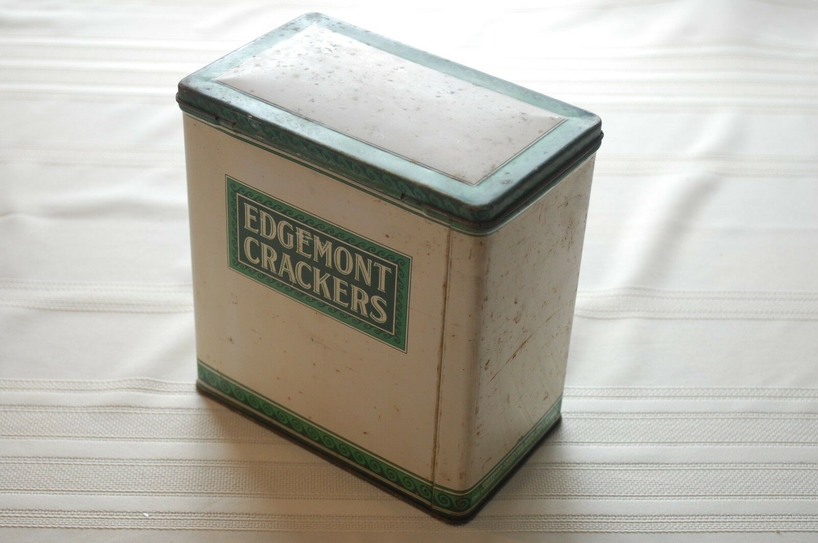 Title (ebay affiliate link): VINTAGE ANTIQUE 1924 EDGEMONT CRACKERS METAL TIN GREEN & GREEN CO. DAYTON OHIO