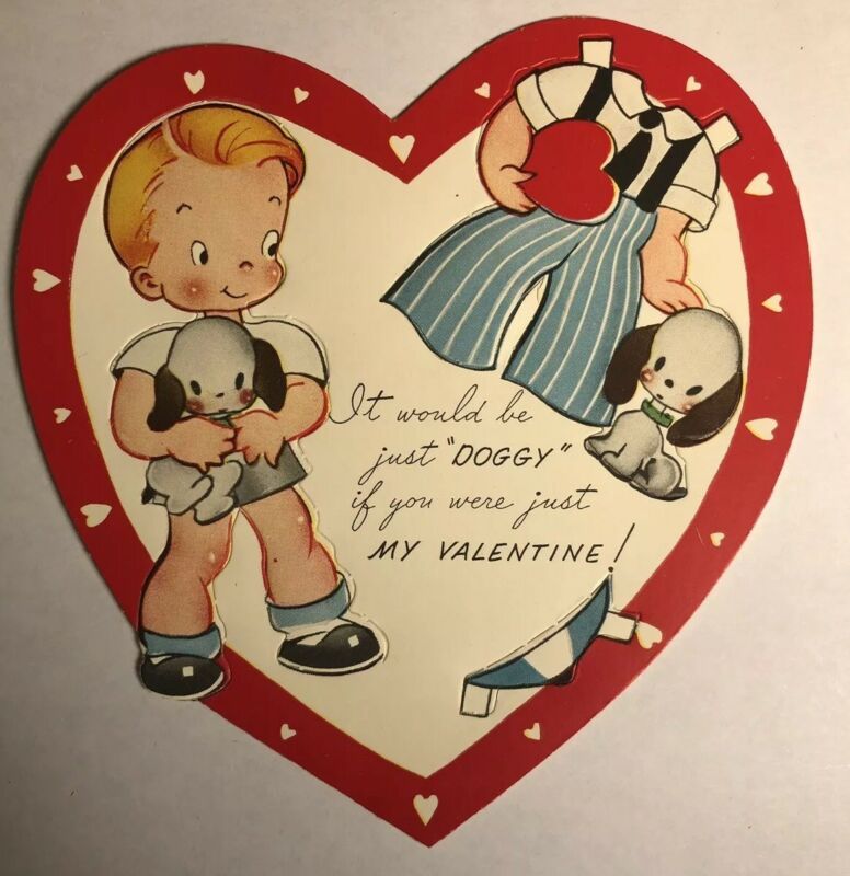 Title (ebay affiliate link): Vintage Estate 1930s-40s Valentine Paper Doll Punch Out Boy And Puppy Dog Unused