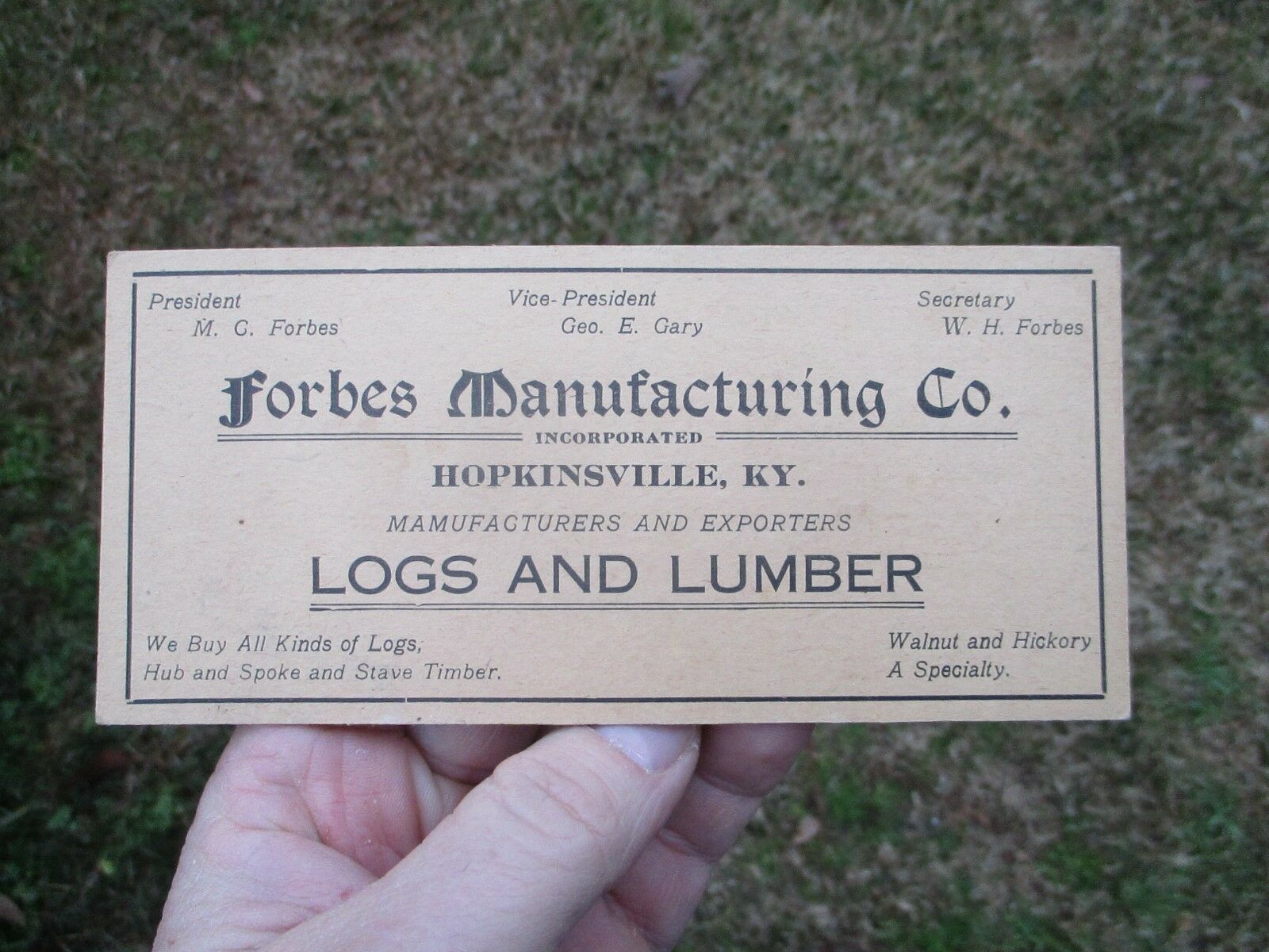Title (ebay affiliate link): ANTIQUE FORBES LOGS & LUMBER TRADE CARD HOPKINSVILLE KY SCRIBNERS DOYLE''S RULE