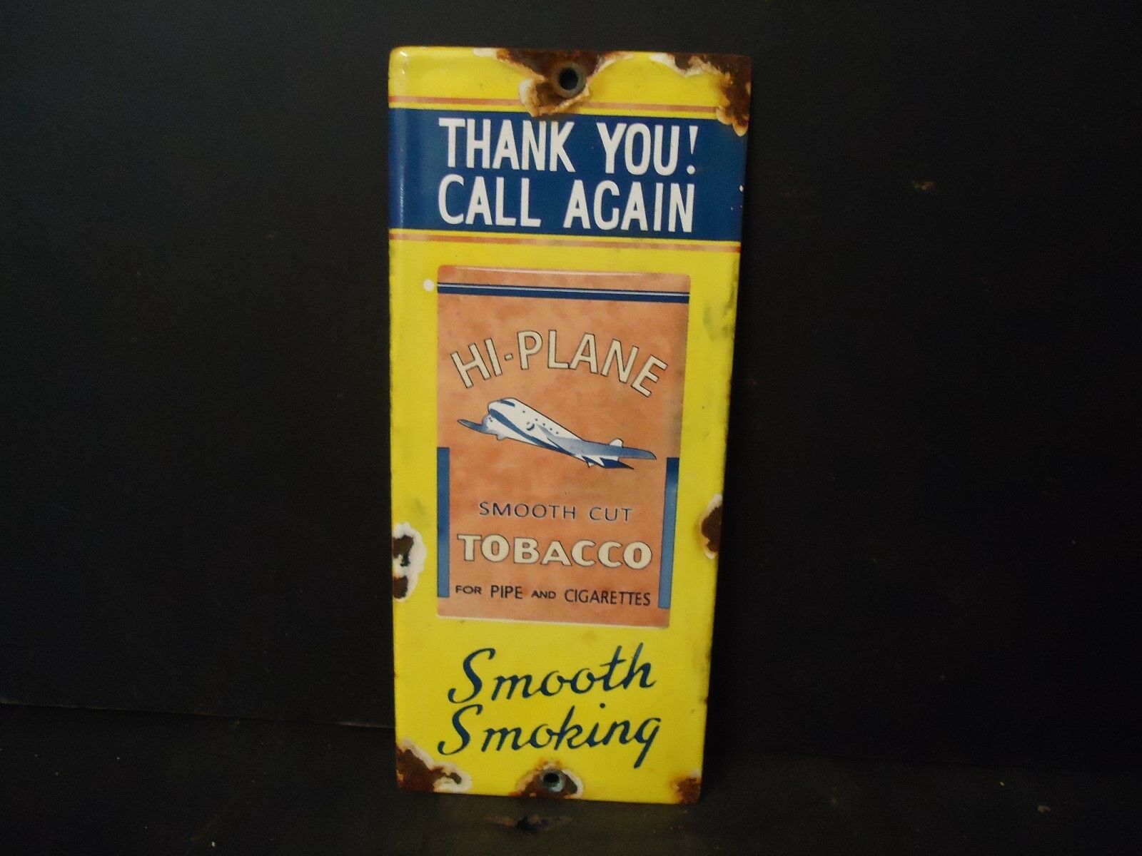 Title (ebay affiliate link): VINTAGE HI-PLANE SMOOT CUT TOBACCO PORCELAIN GAS STATION DOOR SIGN "THANK YOU"