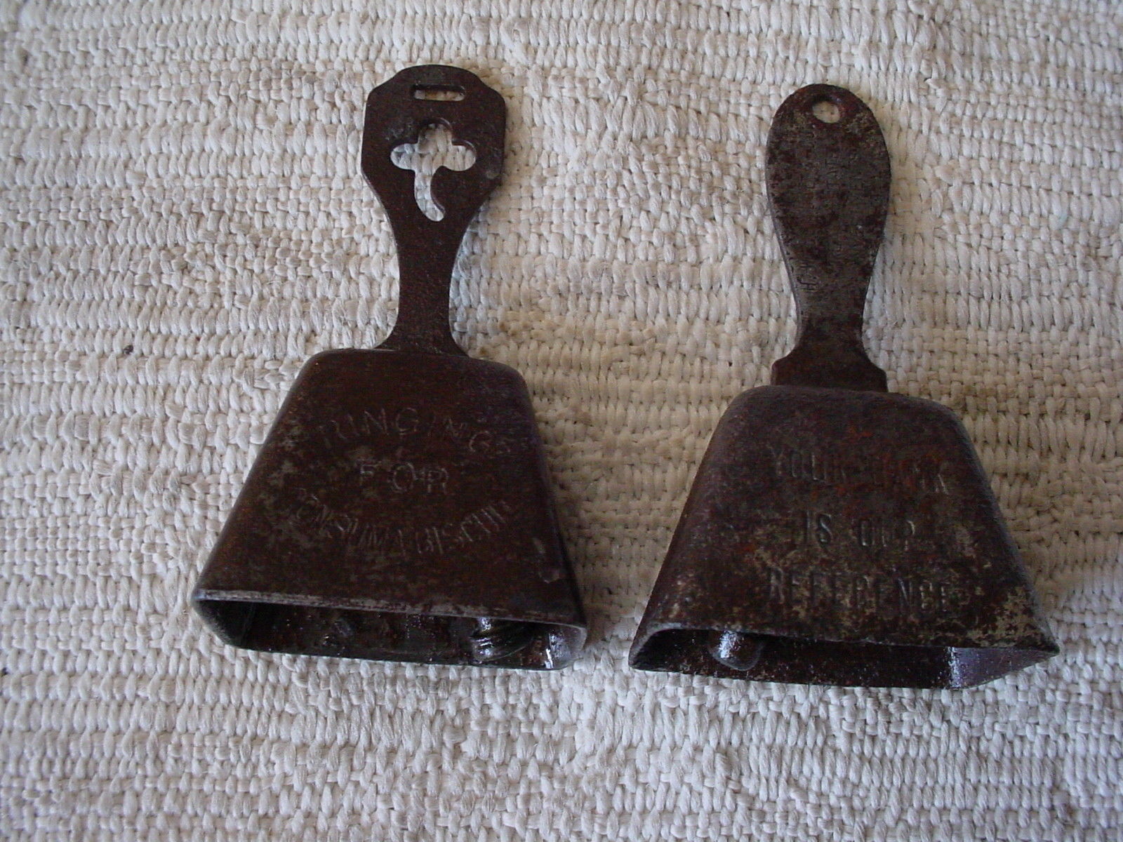 Title (ebay affiliate link): 2 Antique Metal Advertising Bells Consumer Biscuit Elmore Homes New Orleans La.