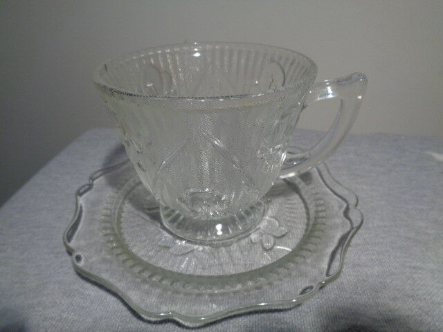 Vintage Jeannette Glass Iris & Herringbone Clear Cup & Saucer