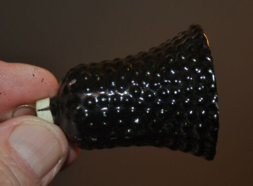 ANTIQUE German BUMPY-GLASS-BELL w/ Clapper CHRISTMAS ORNAMENT rare black VINTAGE