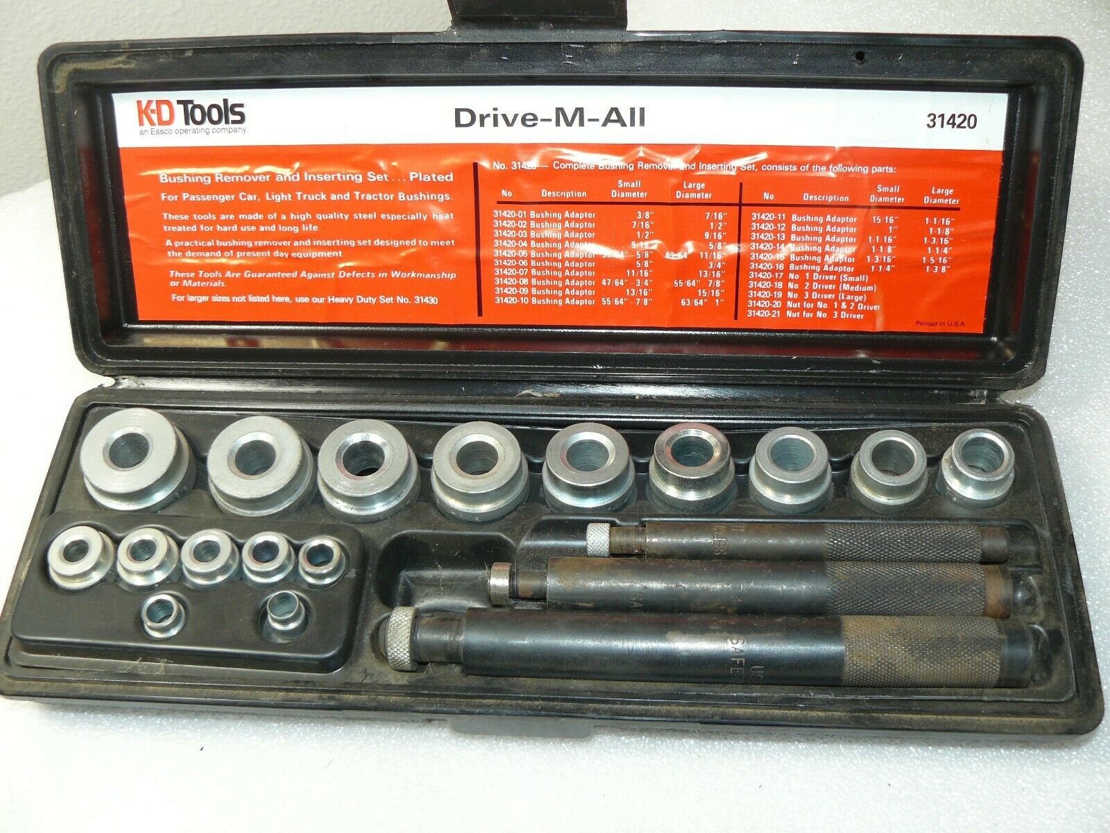 Title (ebay affiliate link): K-D TOOLS 3142 Drive-M-All Bushing Remover Set 19 pcs in Case