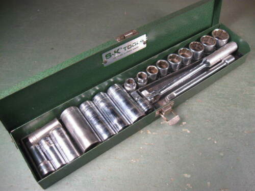 OLD USED VINTAGE MECHANICS TOOLS S-K SOCKETS SET W/ BOX