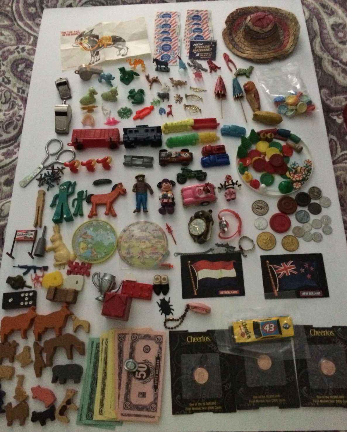 Title (ebay affiliate link): Toy Junk Drawer Lot Cracker Jack, Gumball, Small Toy, Game Markers and more