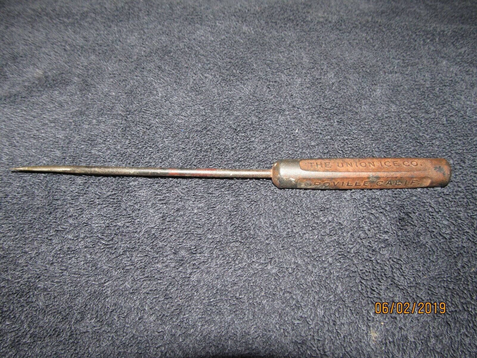 Title (ebay affiliate link): Vintage Oroville Ca. Union Ice Co. Iron Ice Pick 8 3/4 inches