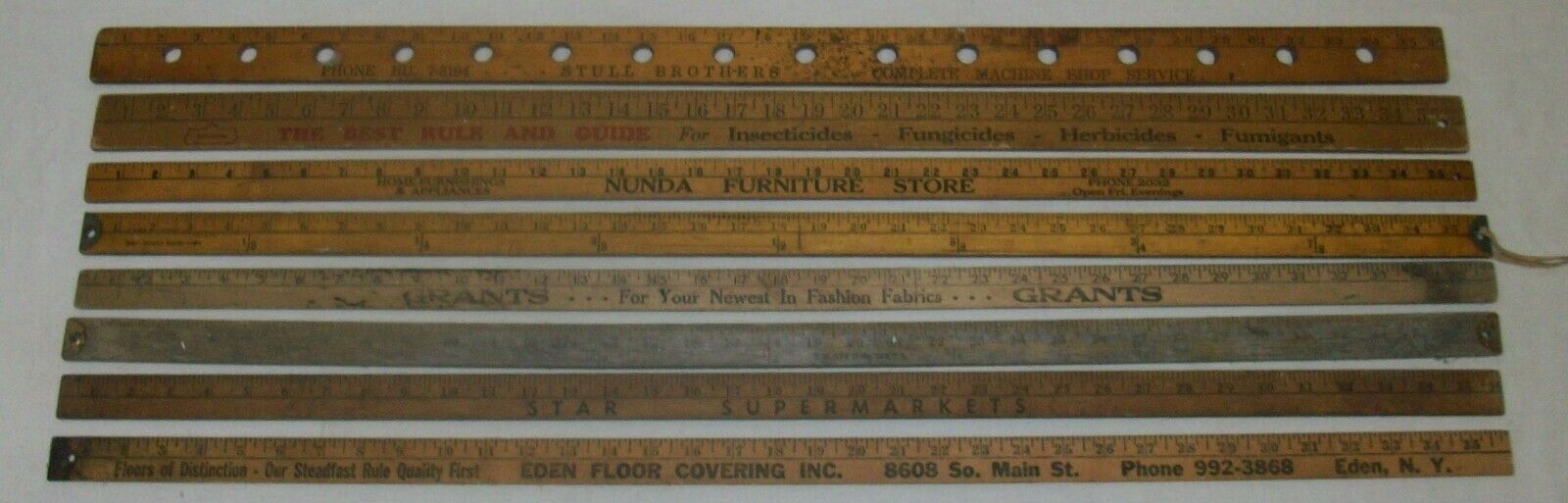 8 Vintage Yard Sticks (2-Oversize Wide) Star Supermarket, Nunda, Stull Machine