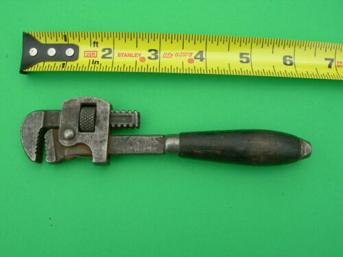 Vintage Stillson Plumber''s Pipe Monkey Wrench 6 1/4", Wooden Handle
