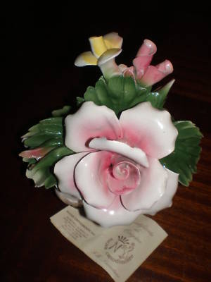VINTAGE~NUOVA CAPODIMONTE FLOWER~SIGNED~"N" W/ HORSE