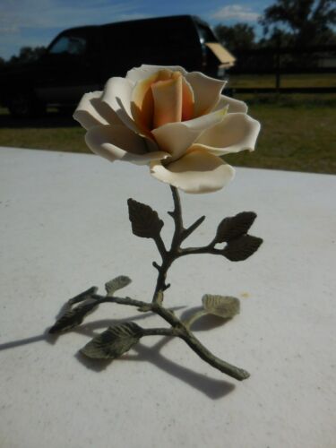 Capodimonte Porcelain Rose Flower with Metal Stem