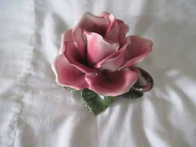 PORCELAIN CAPODIMONTE ROSE CANDLE HOLDER ITALIAN