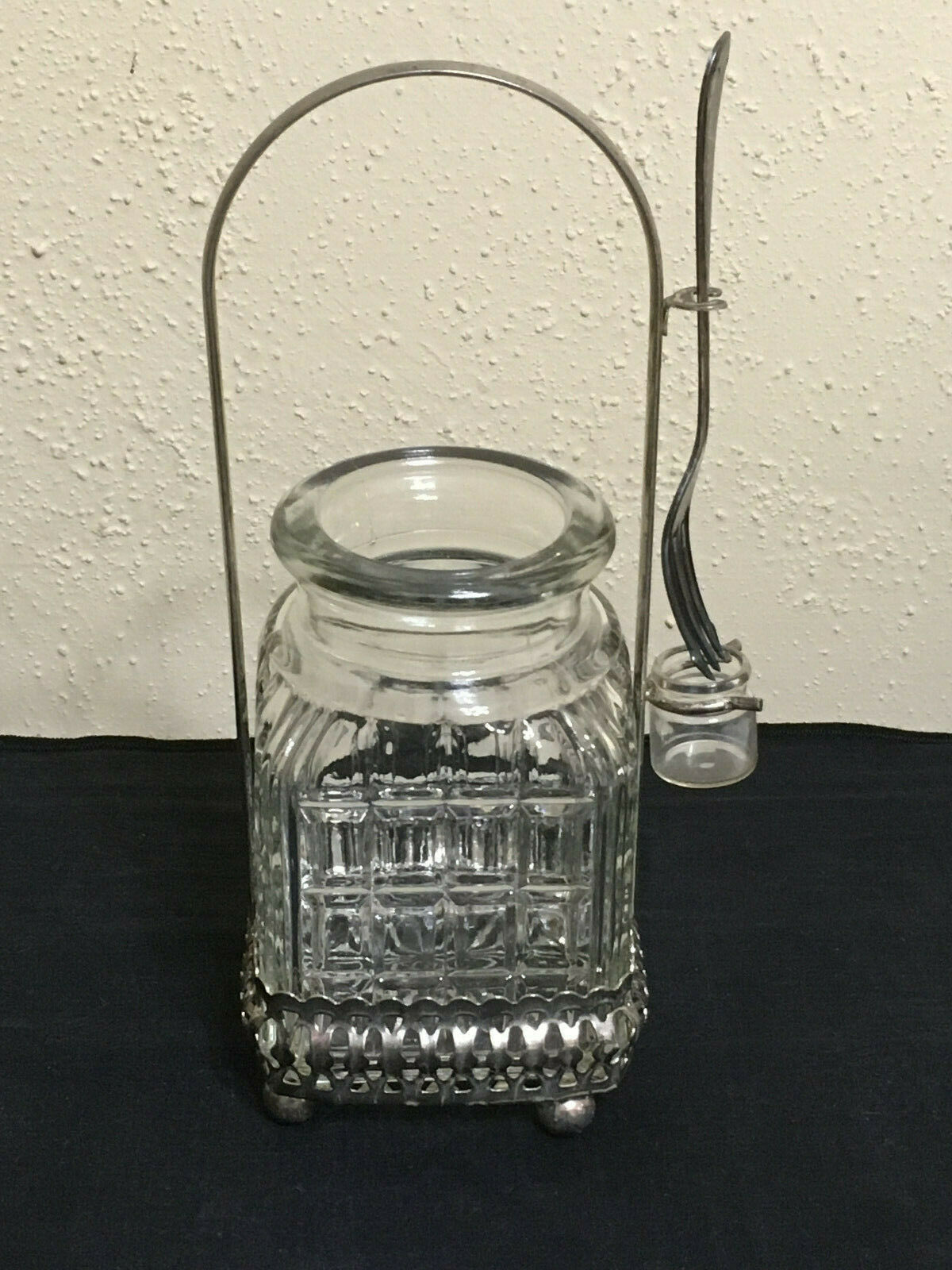 Vintage Depression Glass Pickle Castor Jar With Fork (England) and Holder