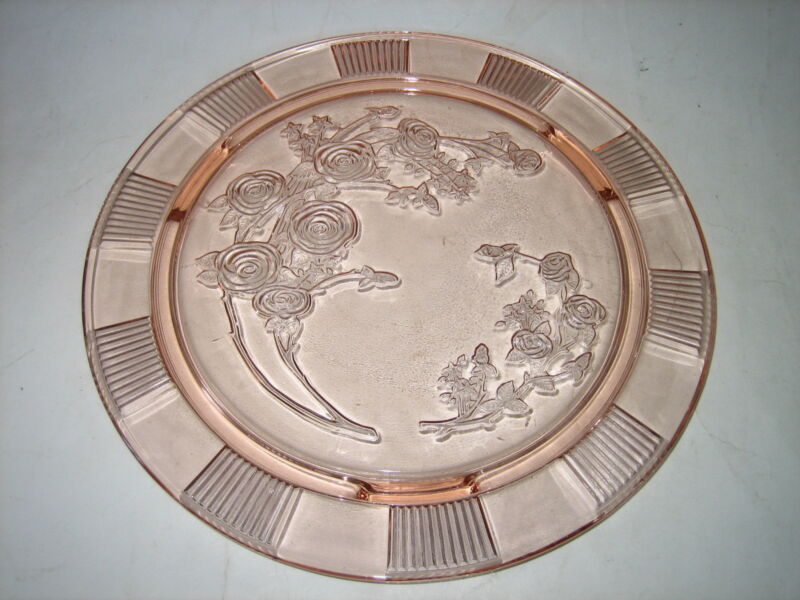 Title (ebay affiliate link): PINK SHARON CABBAGE ROSE DEPRESSION GLASS 11 1/2 " FOOTED CAKE PLATE