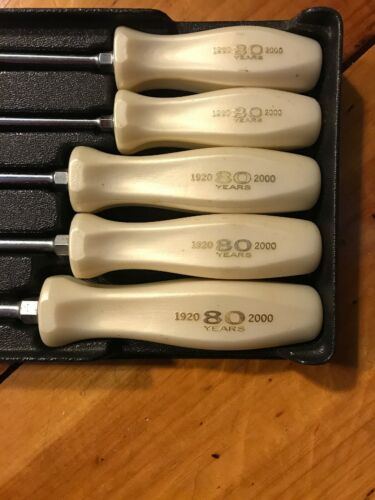 SNAP ON SCREWDRIVER SET, 5 PC SET,PEARL COLORED HANDLES,2000,80th ANNIVERSARY