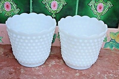 Two Vintage Hobnail Fire king Milkglass Flower Pots