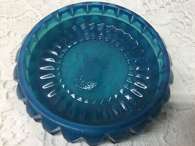 Blue Milk glass salt dip cellar celt master dish coaster art Opaque Slag marble