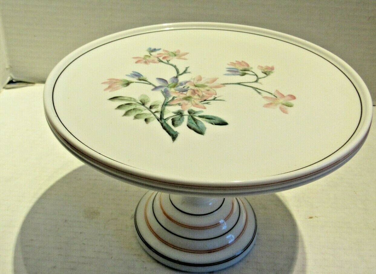 Antique Hand Painted Milk Glass Pedestal Cake Plate c 1900''s