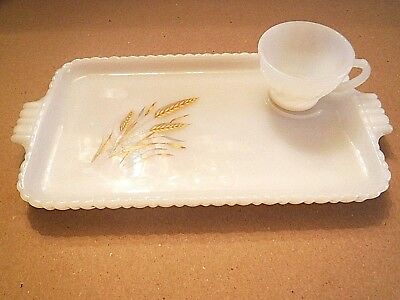 Vintage ANCHOR HOCKING Fire King Milk Glass Wheat Pattern Serva-Snack Set