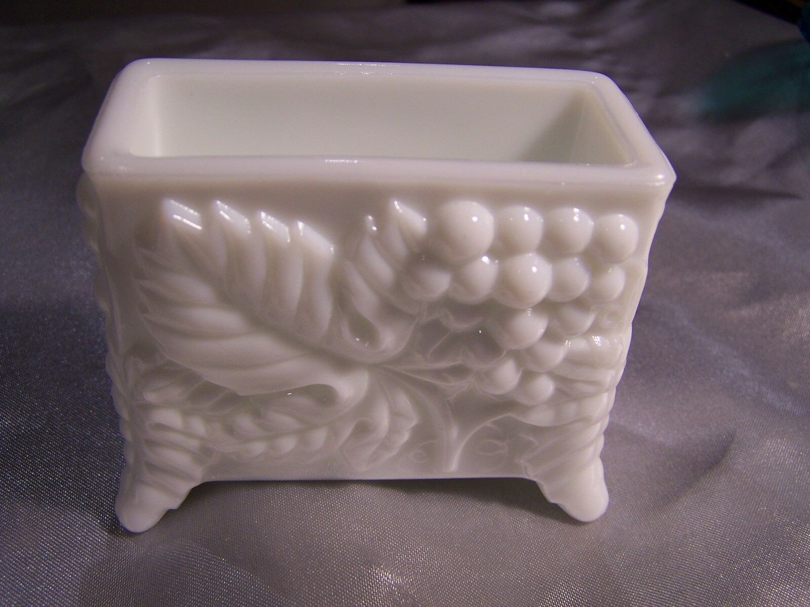 Imperial white milk Glass cigarette card toothpick holder Vintage grapes