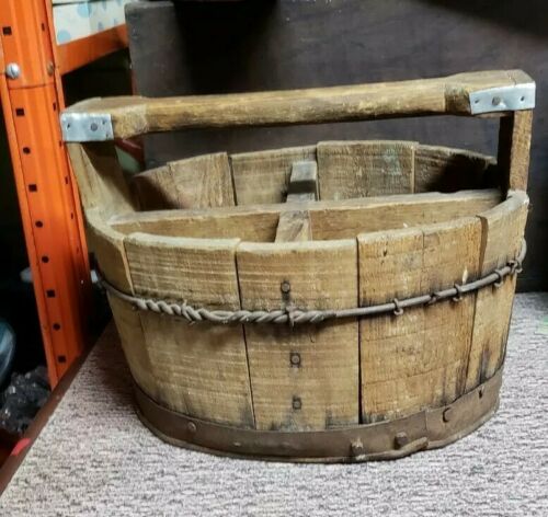 Antique Vintage Primitive Wood Wooden Pail Bucket Rustic Farm nail bucket