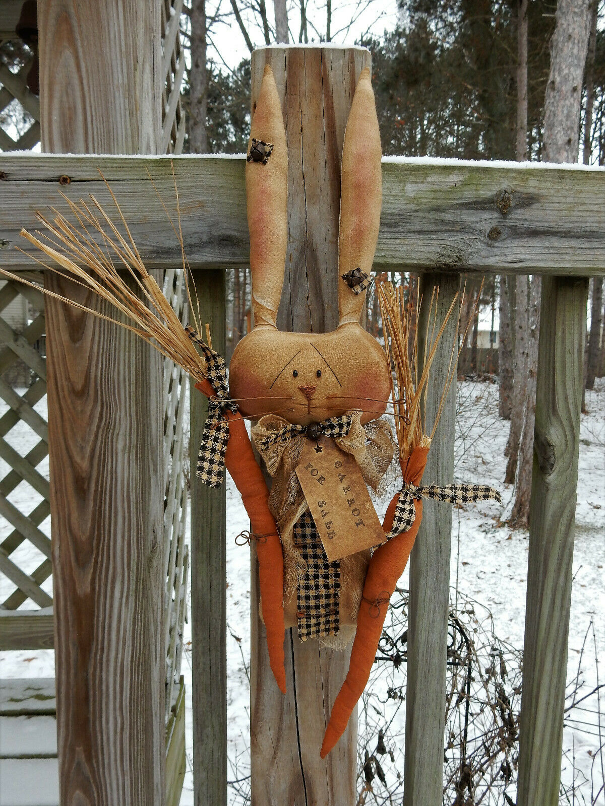 Title (ebay affiliate link): FoLk Art PrimiTive sPriNg gRuNgy Bunny RABBIT DOLL CarroT SaLe Door DecoraTion