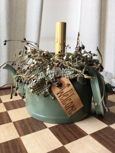 Title (ebay affiliate link): Green Tea Kettle Primitive Country Decor Tabletop Light