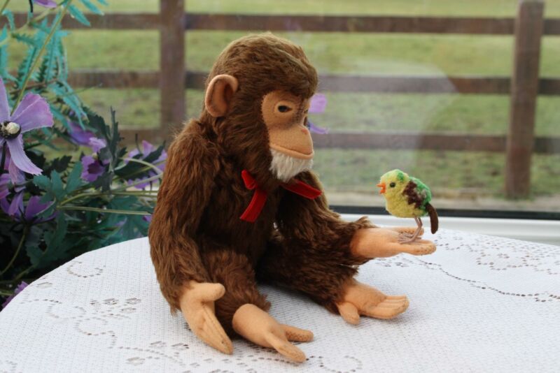 Title (ebay affiliate link): 11" Vintage Steiff Mohair Toy JOCKO MONKEY Silver Ear Button & Sqeaker Doll Bear