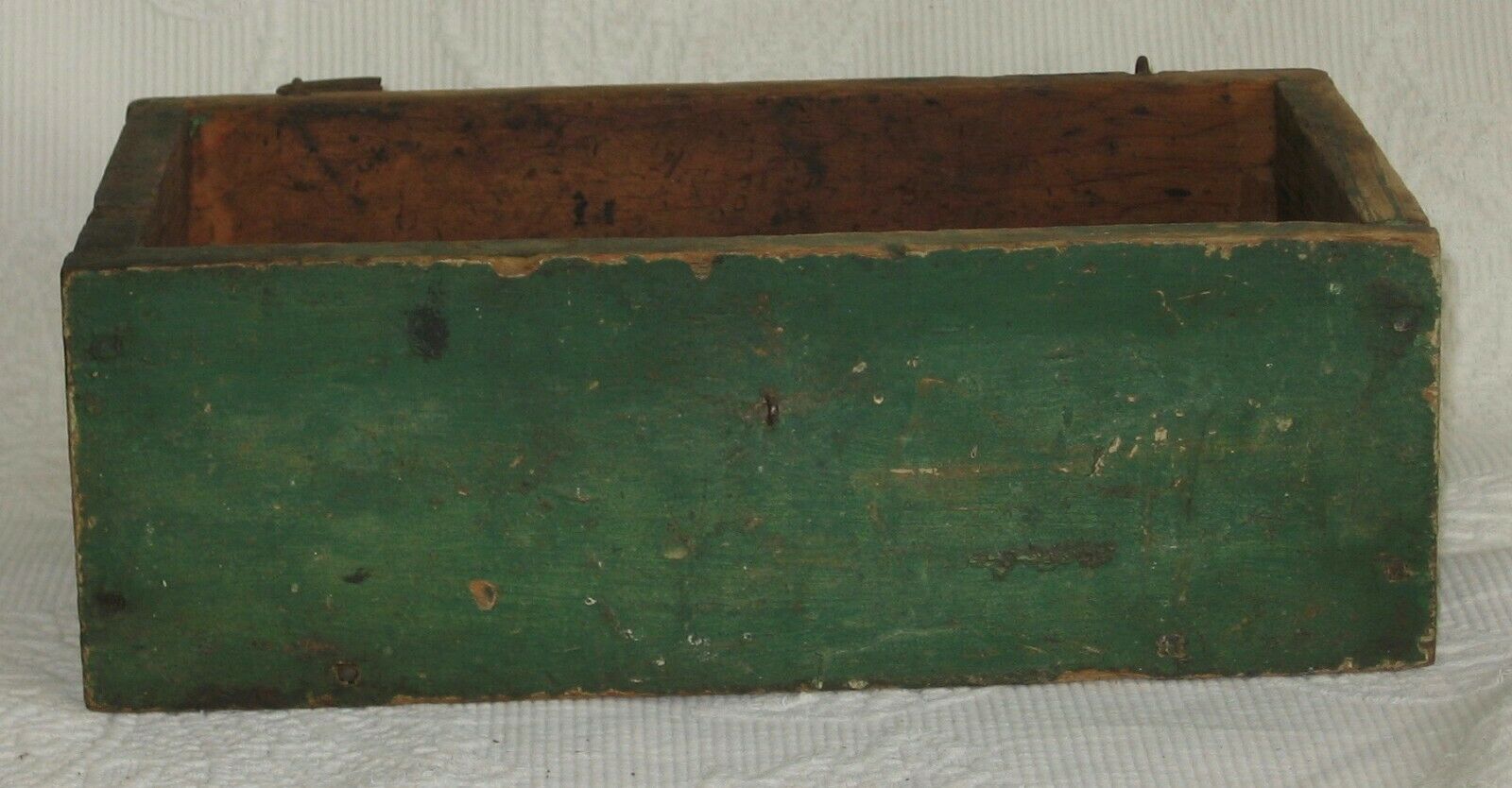 Antique Painted Wooden Document Box Base Snipe Hinge AAFA Old Original Green