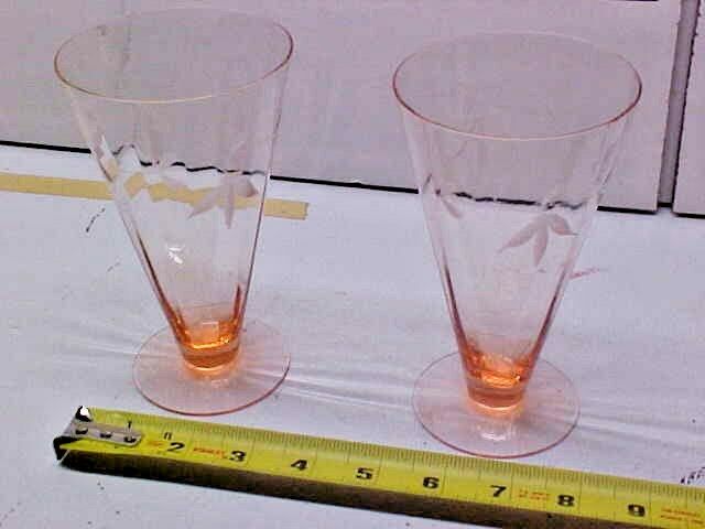 Title (ebay affiliate link): Vintage Pink Depression Glass Footed Parfait Glasses Set of 2 Beautiful Etched