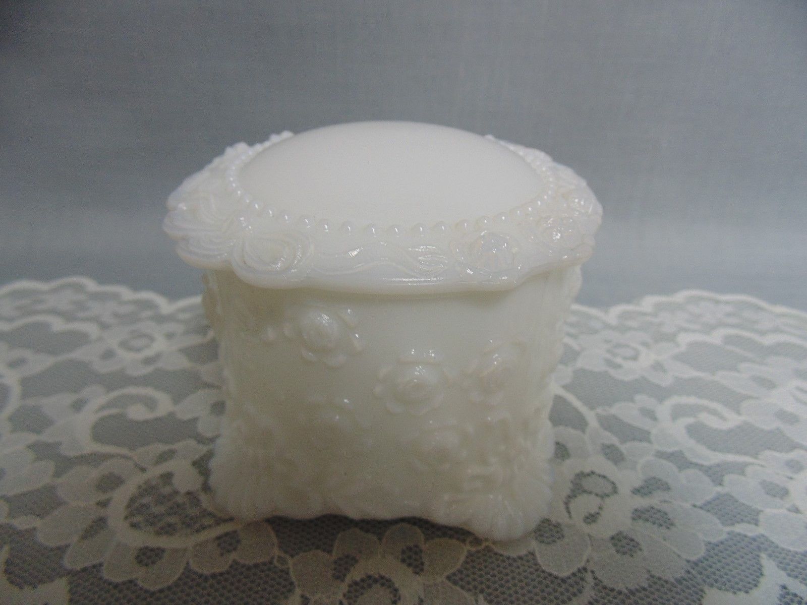 Vintage Milkglass Dresser Jar Roses Bows Marked K
