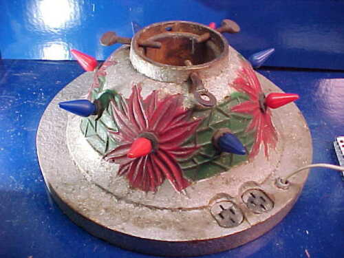 Title (ebay affiliate link): 1930s CHRISTMAS TREE Cast Iron STAND w ILLUMINATED BASE + POINSETTIAS Works
