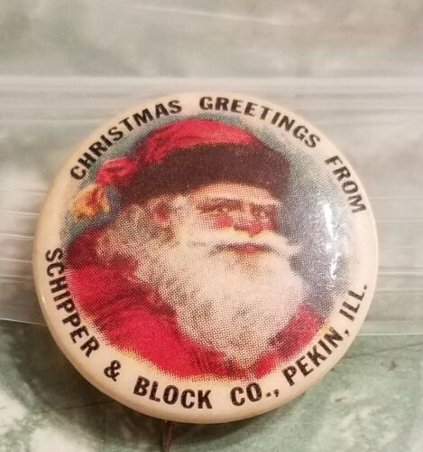 Title (ebay affiliate link): Button Pin Vintage James Spencer & Co Philadelphia Christmas Santa Schipper IL