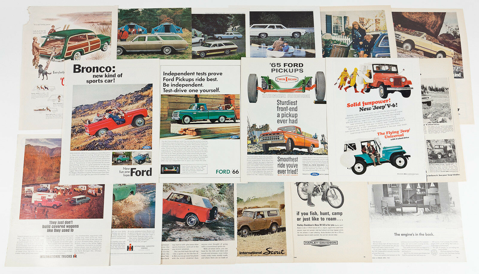 Lot of 1960''s Car & Truck Ads - Bronco Jeep Scout Ford International GM Harley