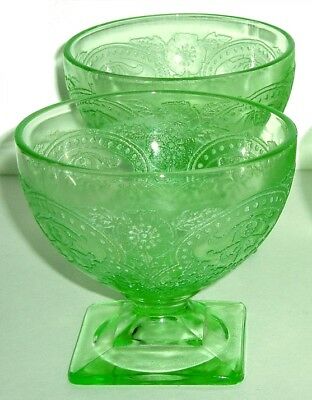 Pair of Green Horseshoe Pattern Depression Glass SHERBET CUPS
