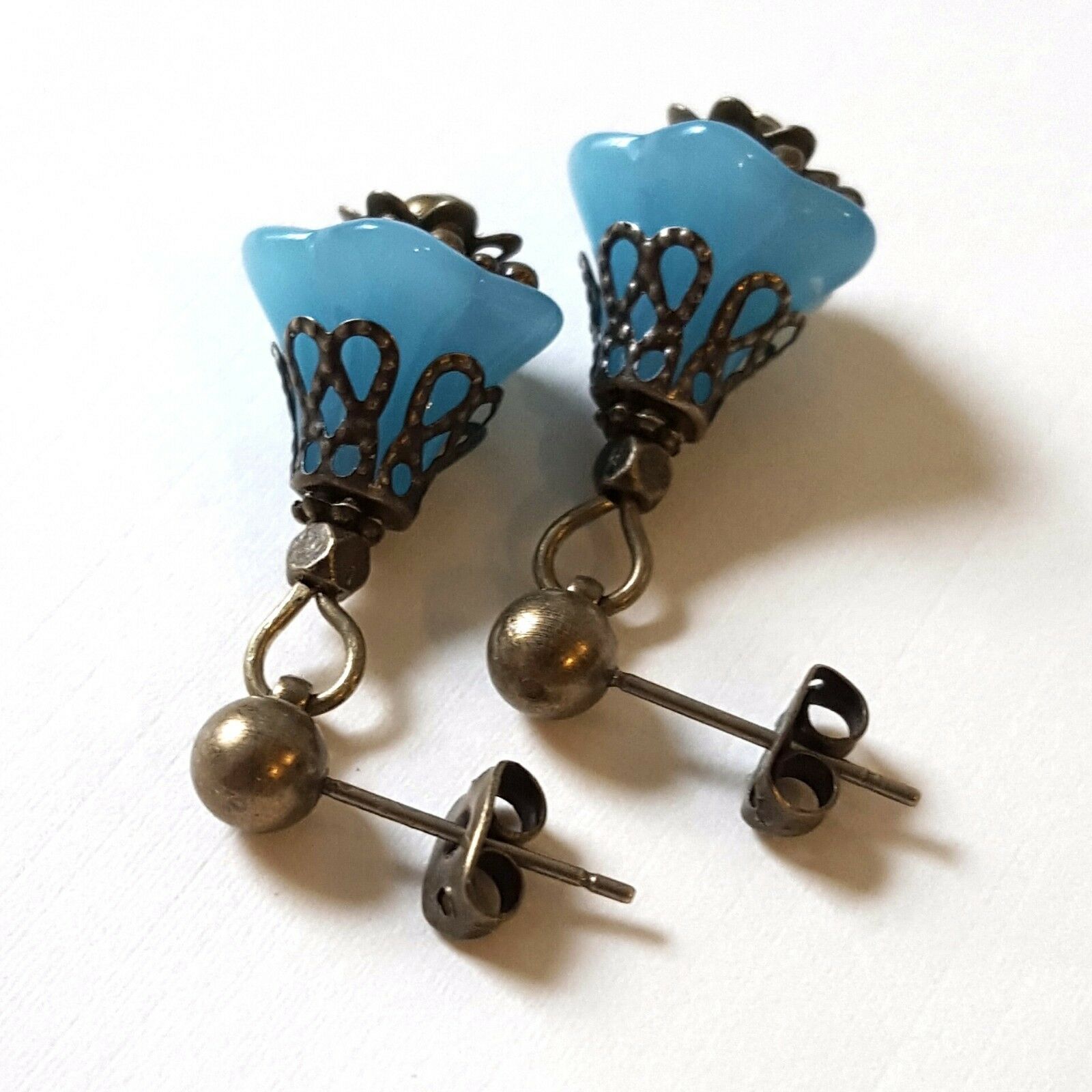 Title (ebay affiliate link): bright sky blue filigree nouveau stud post victorian antique brass earrings