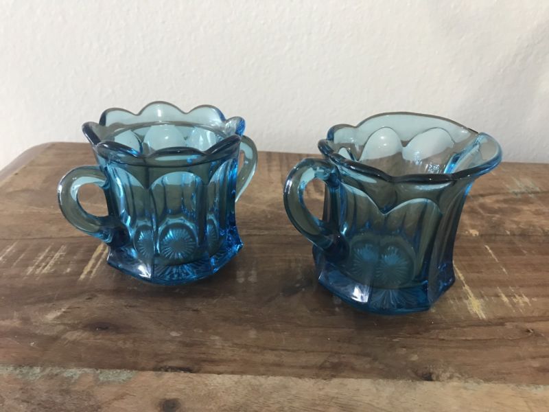 Turquoise Depression Glass Sugar Bowl & Creamer