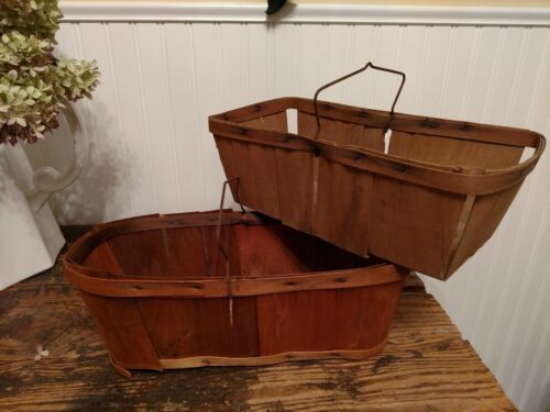 Title (ebay affiliate link): Lot of 2 Vintage Old Wooden Wire Handle Slate Berry Baskets
