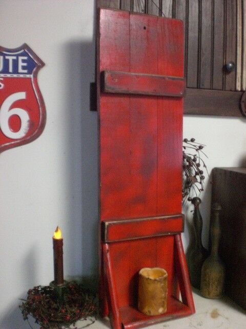 Title (ebay affiliate link): Primitive Wooden Tall Candle Shelf - Wood Red Wall Shelf - Nice