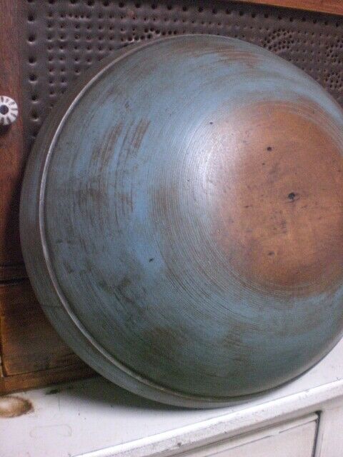 Title (ebay affiliate link): Early Antique Blue Dough Bowl w/ Rim - Wood Bowl - Old