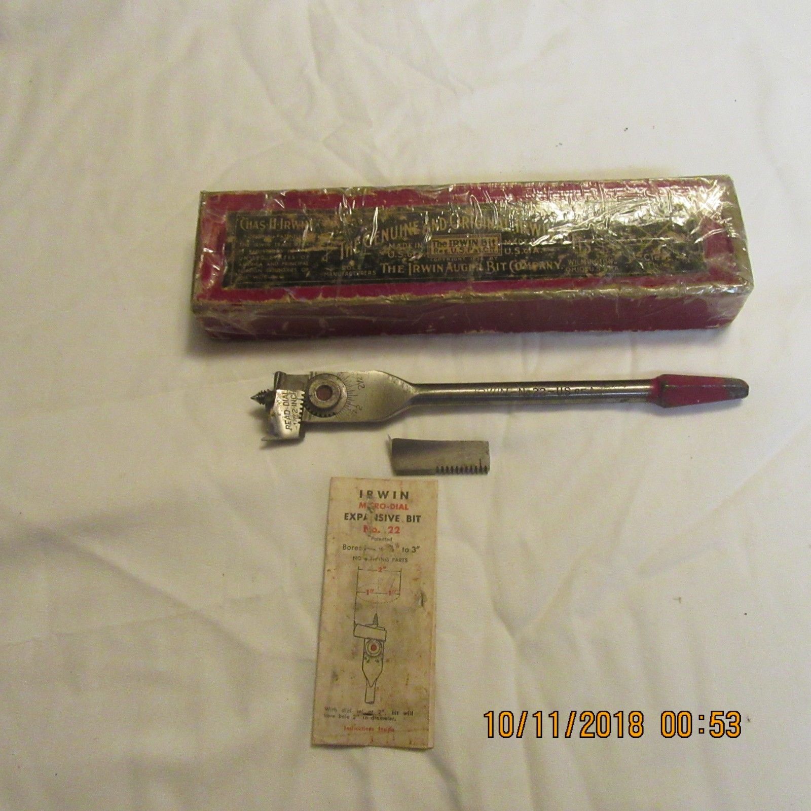 Title (ebay affiliate link): Vintage IRWIN #22 Micro-Dial Expansive Auger Bit 5/8" - 3" Diam. Cut Orig. Box
