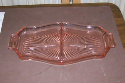Title (ebay affiliate link): PINK DEPRESSION GLASS DIVIDED RELISH DISH WITH HANDLES