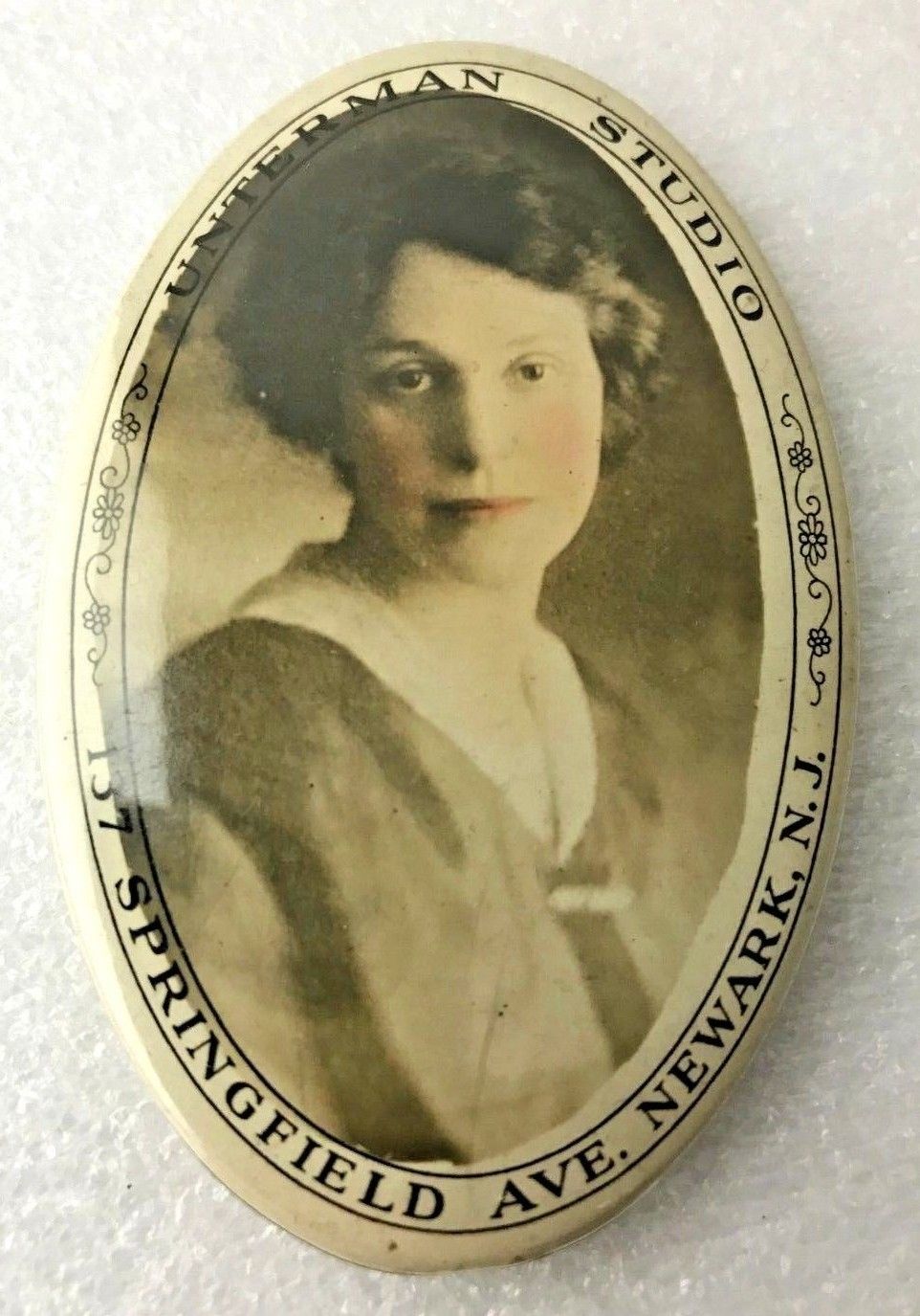 ANTIQUE VICTORIAN UNTERMAN STUDIO CELLULOID ADVERTISING POCKET MIRROR NEW JERSEY