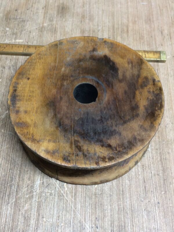 Title (ebay affiliate link): Vintage Barn Trolley Pulley Wooden Wheel Only