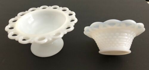 Vintage Milk Glass Bowls ~ Open Lace Pedestal & Hobnail ~ Very Nice!!!
