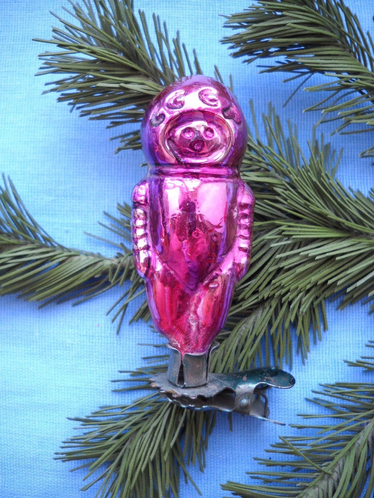 OLD RUSSIAN GLASS CHRISTMAS ORNAMENT COSMONAUT