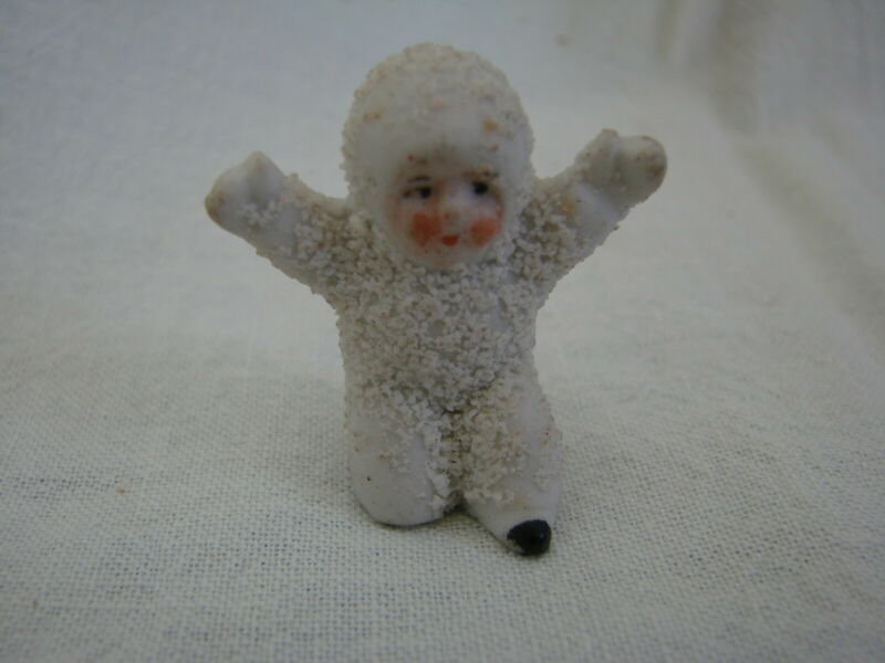 ANTIQUE GERMAN BISQUE KNEELING SNOW BABY 1-3/8" TALL EARLY SNOWBABY FIGURE