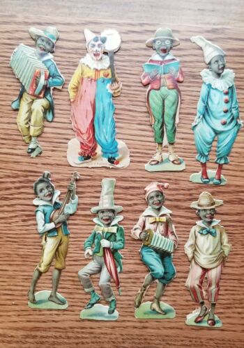 Title (ebay affiliate link): Eight Ethnic Black Clowns, in Various Poses. Fourth set of 1890s German Scraps