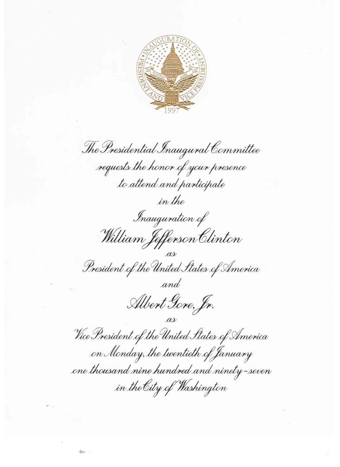 Title (ebay affiliate link): Invitation Packet to Bill Clinton and Al Gore Inauguration January 20 1997