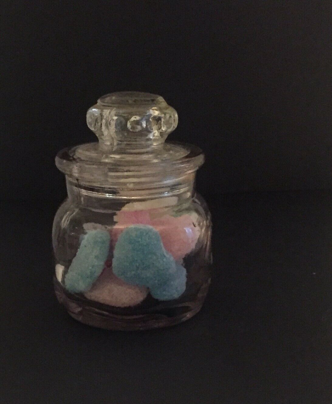 Title (ebay affiliate link): Tiny Pressed Glass Candy Apothecary Jar Or Paste Embossed